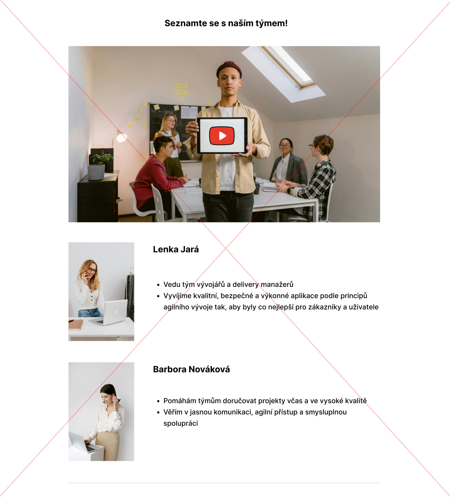 ⚠️It’s not clearly defined who the people in the photos are (what positions they hold, whether they are part of the team, or what type of employees they represent).
