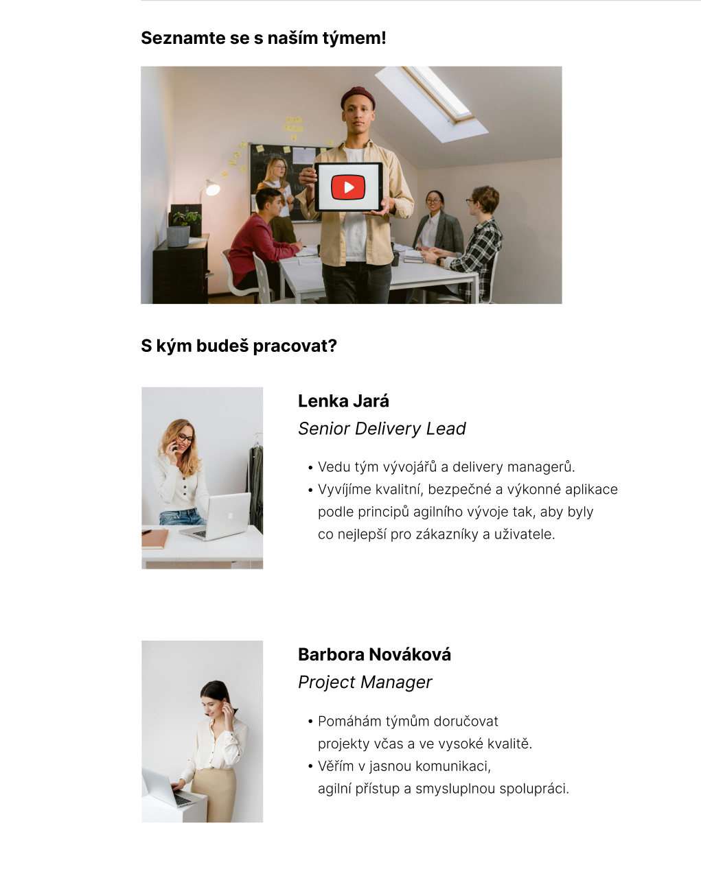 ▸ In the section “Who will you work with?”, we added information about who the people in the photos are and what positions they hold within the company.